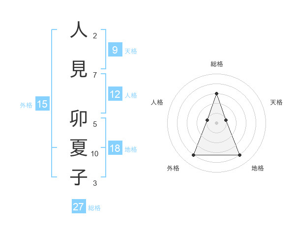 人見 卯夏子さんの総格は27画の3点!