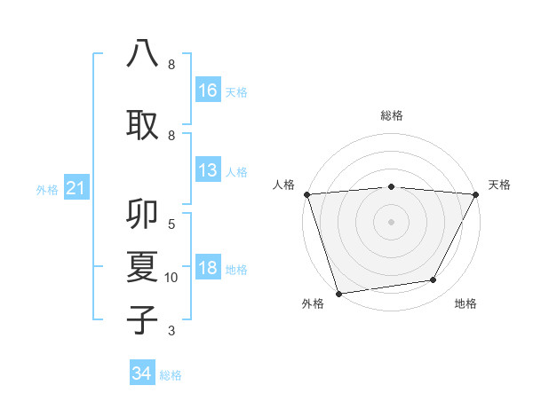 八取 卯夏子さんの外格は21画の5点!