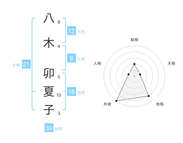八木 卯夏子さんを姓名の画数から五運を鑑定