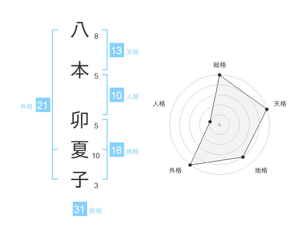 八本 卯夏子さんの外格は21画の5点!
