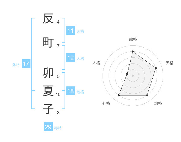 反町 卯夏子さんを姓名の画数から五運を鑑定