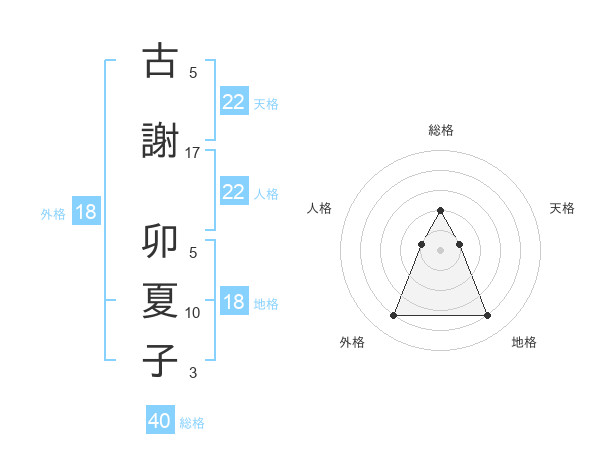 古謝 卯夏子さんを姓名の画数から五運を鑑定