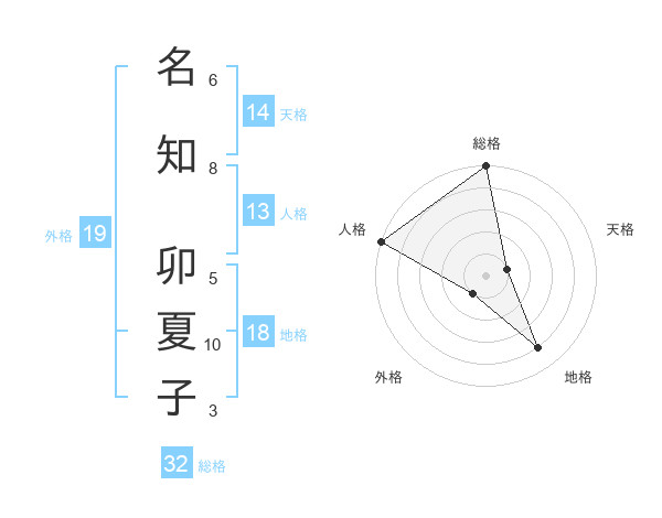 名知 卯夏子さんの総格は32画の5点!