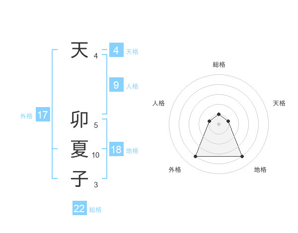 天 卯夏子さんを姓名の画数から五運を鑑定