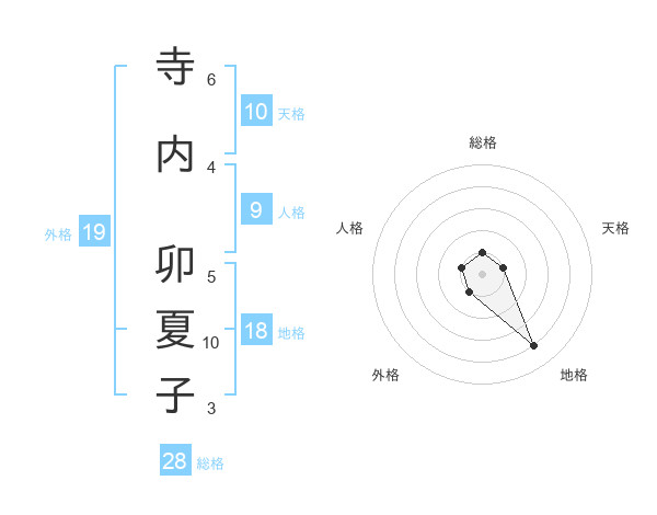 寺内 卯夏子さんの外格は19画の1点!