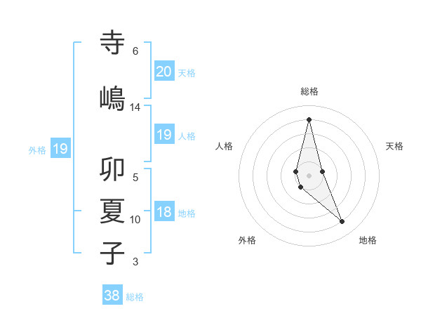 寺嶋 卯夏子さんの総格は38画の4点!