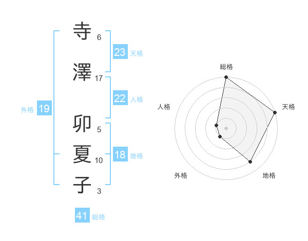 寺澤 卯夏子さんの天格は23画の5点!