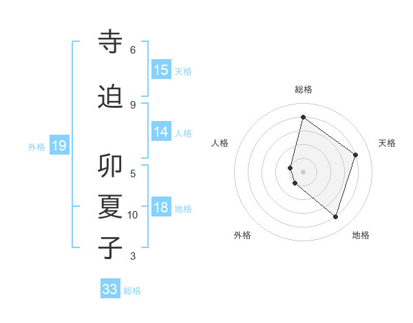 寺迫 卯夏子さんを姓名の画数から五運を鑑定