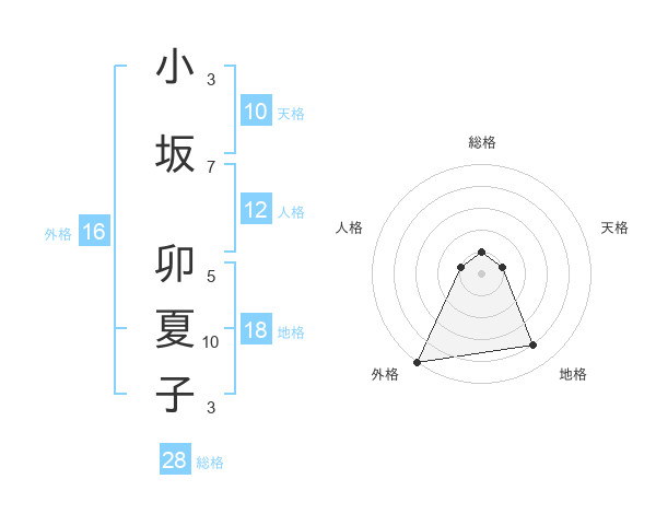 小坂 卯夏子さんの外格は16画の5点!