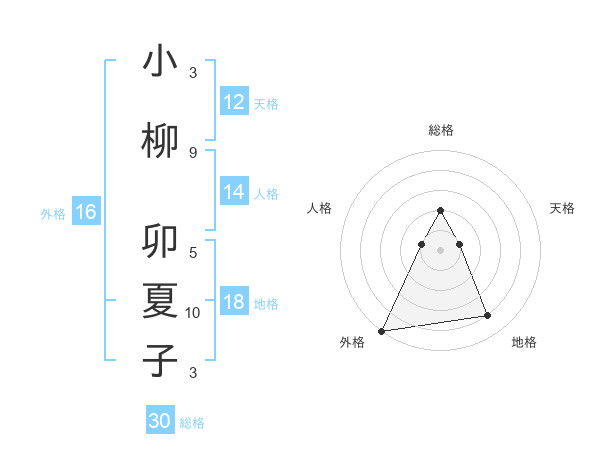 小柳 卯夏子さんの総格は30画の2点!