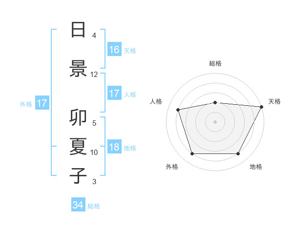 日景 卯夏子さんを姓名の画数から五運を鑑定