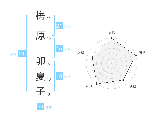 梅原 卯夏子さんの総格は39画の5点!