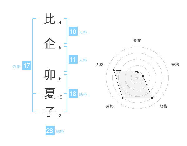 比企 卯夏子さんを姓名の画数から五運を鑑定
