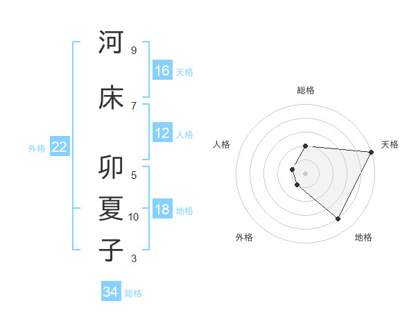 河床 卯夏子さんの天格は16画の5点!