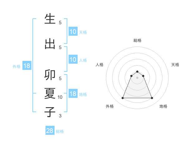 生出 卯夏子さんの外格は18画の4点!