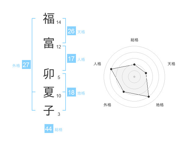 福富 卯夏子さんを姓名の画数から五運を鑑定