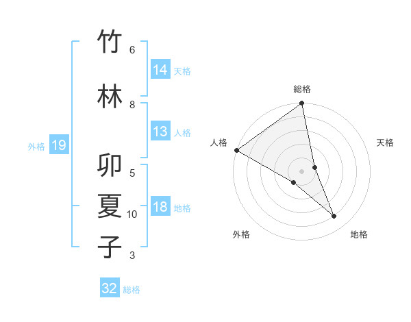 竹林 卯夏子さんを姓名の画数から五運を鑑定