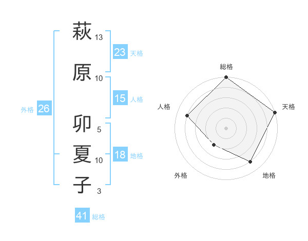 萩原 卯夏子さんを姓名の画数から五運を鑑定
