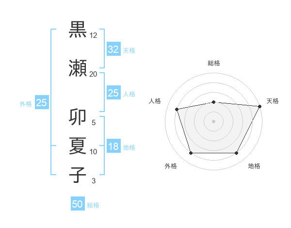 黒瀬 卯夏子さんを姓名の画数から五運を鑑定