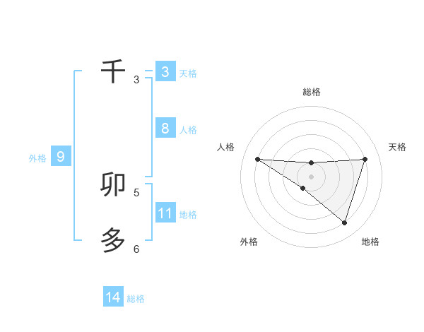 千 卯多さんの総格は14画の1点!