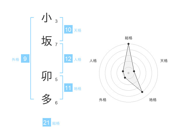 小坂 卯多さんの総格は21画の5点!