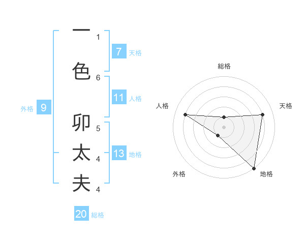 一色 卯太夫さんを姓名の画数から五運を鑑定