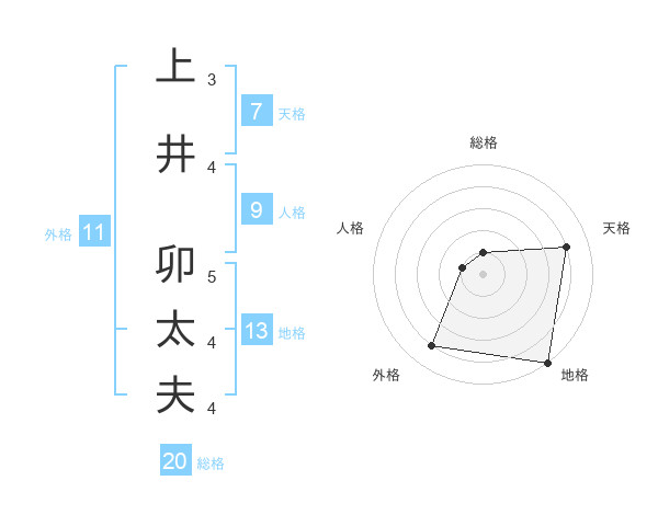 上井 卯太夫さんの総格は20画の1点!