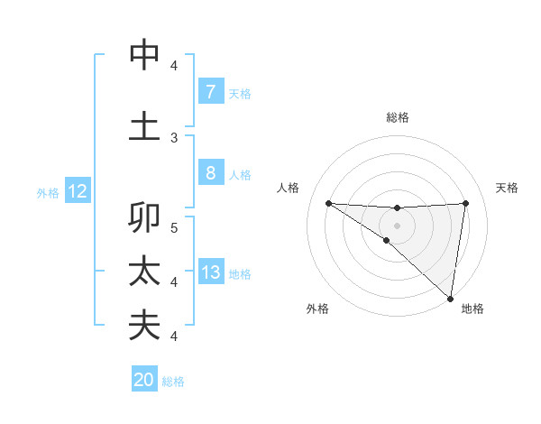 中土 卯太夫さんの総格は20画の1点!