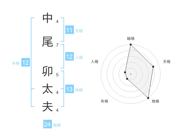 中尾 卯太夫さんを姓名の画数から五運を鑑定