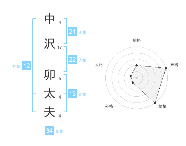 中沢 卯太夫さんの天格は21画の5点!