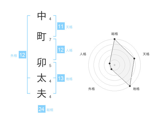 中町 卯太夫さんを姓名の画数から五運を鑑定