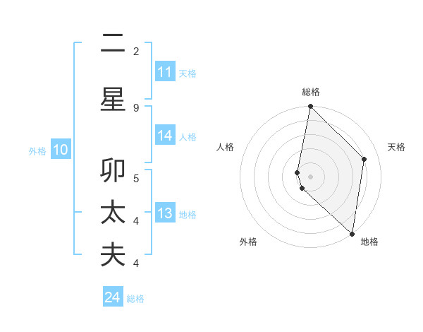 二星 卯太夫さんを姓名の画数から五運を鑑定