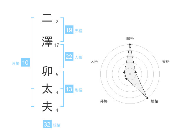 二澤 卯太夫さんの総格は32画の5点!