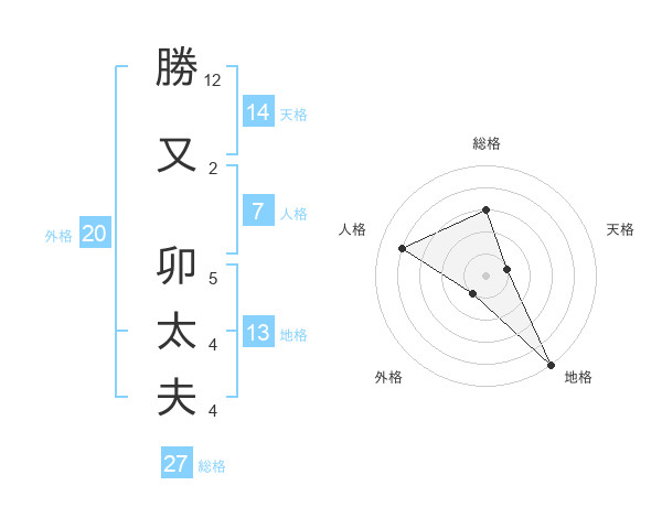 勝又 卯太夫さんを姓名の画数から五運を鑑定