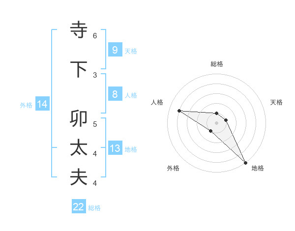 寺下 卯太夫さんの総格は22画の1点!