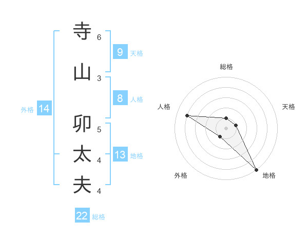 寺山 卯太夫さんの総格は22画の1点!