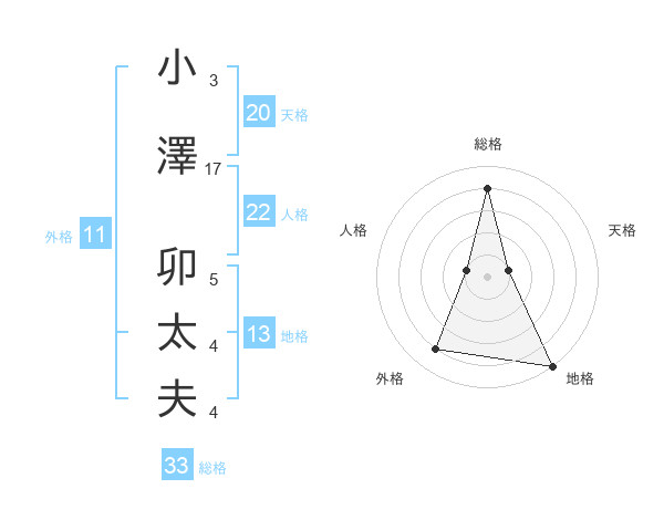 小澤 卯太夫さんを姓名の画数から五運を鑑定
