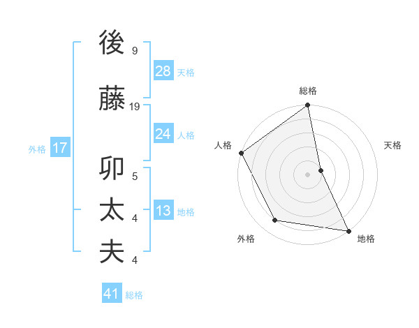 後藤 卯太夫さんの総格は41画の5点!