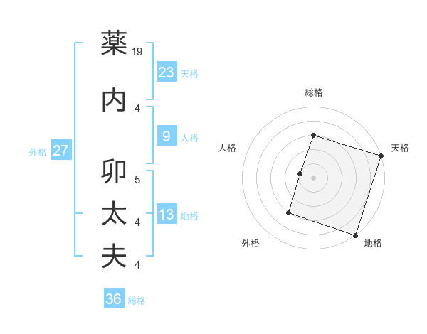 薬内 卯太夫さんを姓名の画数から五運を鑑定