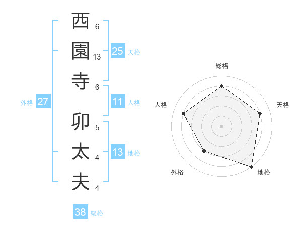 西園寺 卯太夫さんを姓名の画数から五運を鑑定