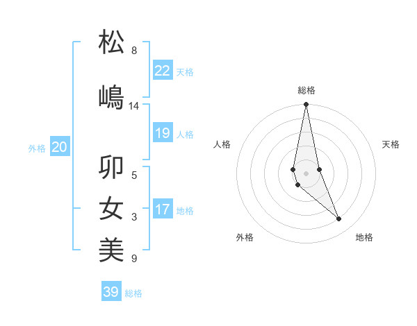 松嶋 卯女美さんを姓名の画数から五運を鑑定