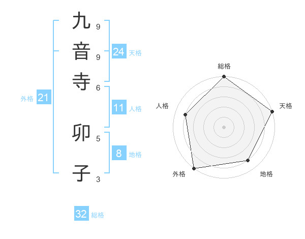 九音寺 卯子さんを姓名の画数から五運を鑑定
