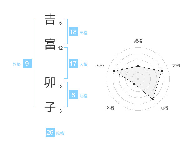 吉富 卯子さんを姓名の画数から五運を鑑定