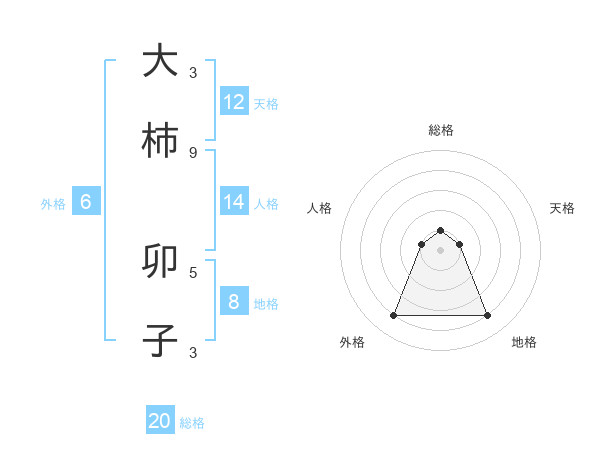 大柿 卯子さんの総格は20画の1点!