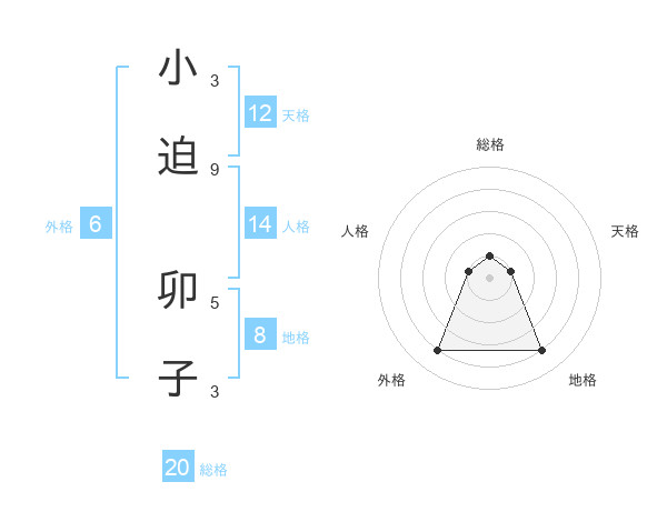 小迫 卯子さんの総格は20画の1点!