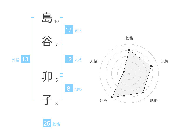 島谷 卯子さんの天格は17画の4点!