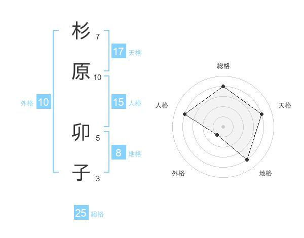 杉原 卯子さんの総格は25画の4点!