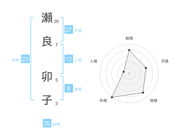 瀬良 卯子さんの外格は23画の5点!