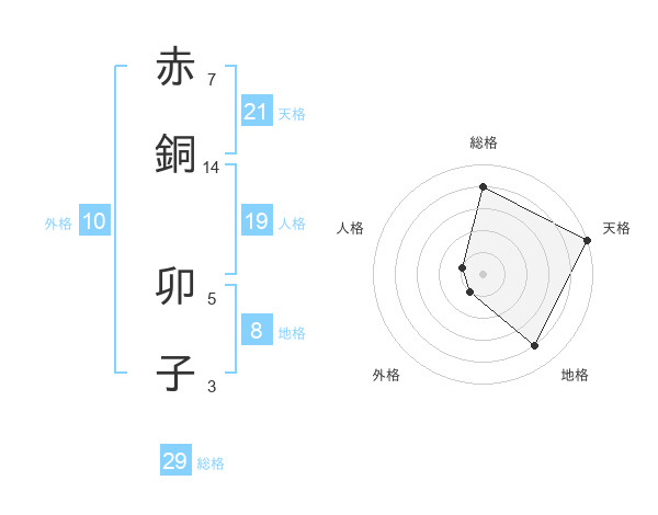 赤銅 卯子さんの総格は29画の4点!