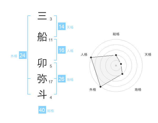 三船 卯弥斗さんを姓名の画数から五運を鑑定